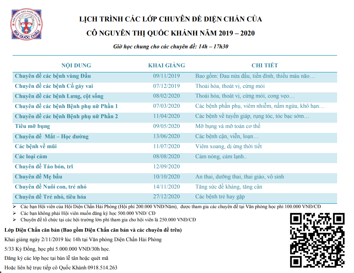 Thông báo khai giảng các lớp Diện Chẩn chuyên đề của chuyên gia hàng đầu về Diện Chẩn, Lương dược Nguyễn Thị Quốc Khánh.