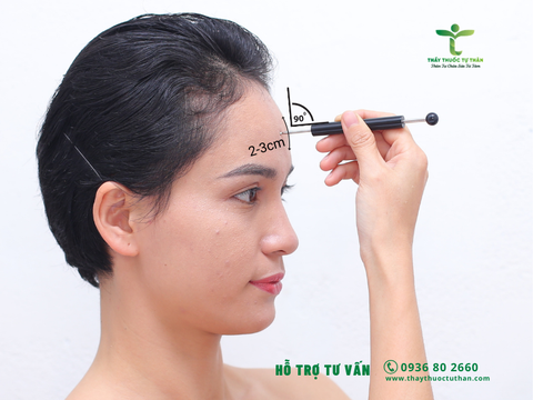 Thao tác Gạch Mặt: Dùng que dò đặt vuông góc với mặt da, gạch các đường ngắn (1-2 cm) và liên tục khắp mặt theo thứ tự: Trán -> Thái dương -> Má -> Quanh miệng -> Cằm (tránh vùng da quanh mắt).