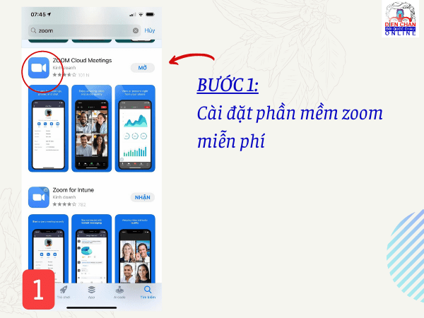 BƯỚC 1: CÀI ĐẶT PHẦN MỀM ZOOM MIỄN PHÍ ( trên điện thoại hoặc máy tính)